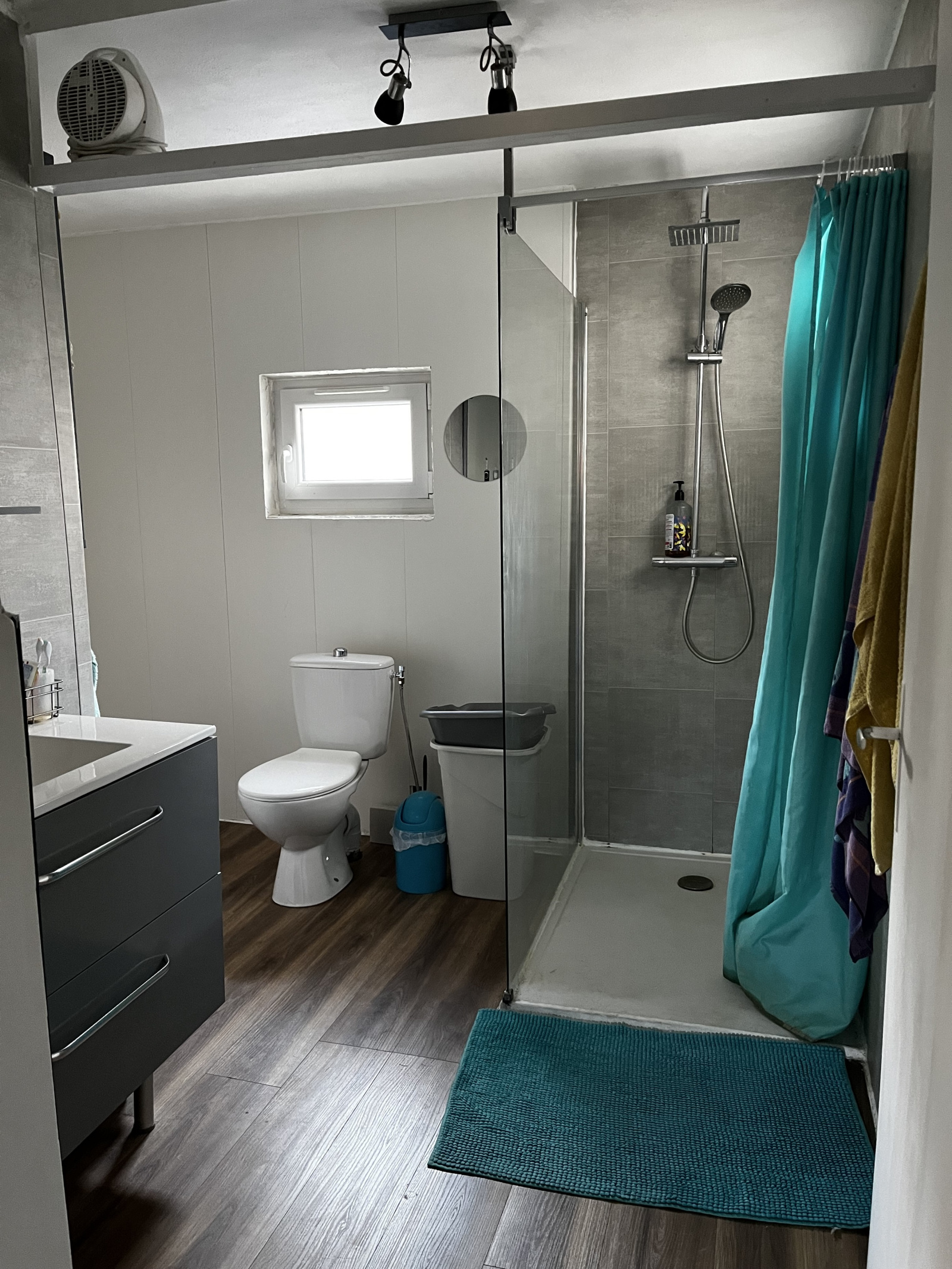 La dépendance sur 2 niveaux offre en bas un garage pour une voiture, et en haut une belle pièce de 22 m² et 5 m sous faîtage à aménager (studio, atelier, loisirs...).