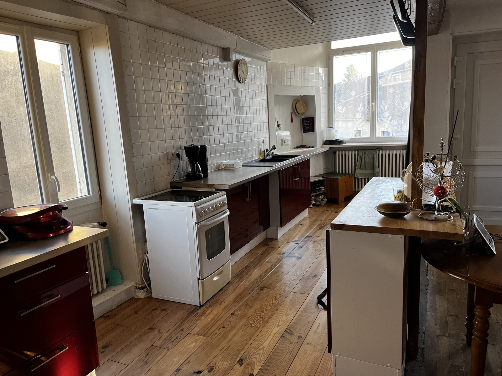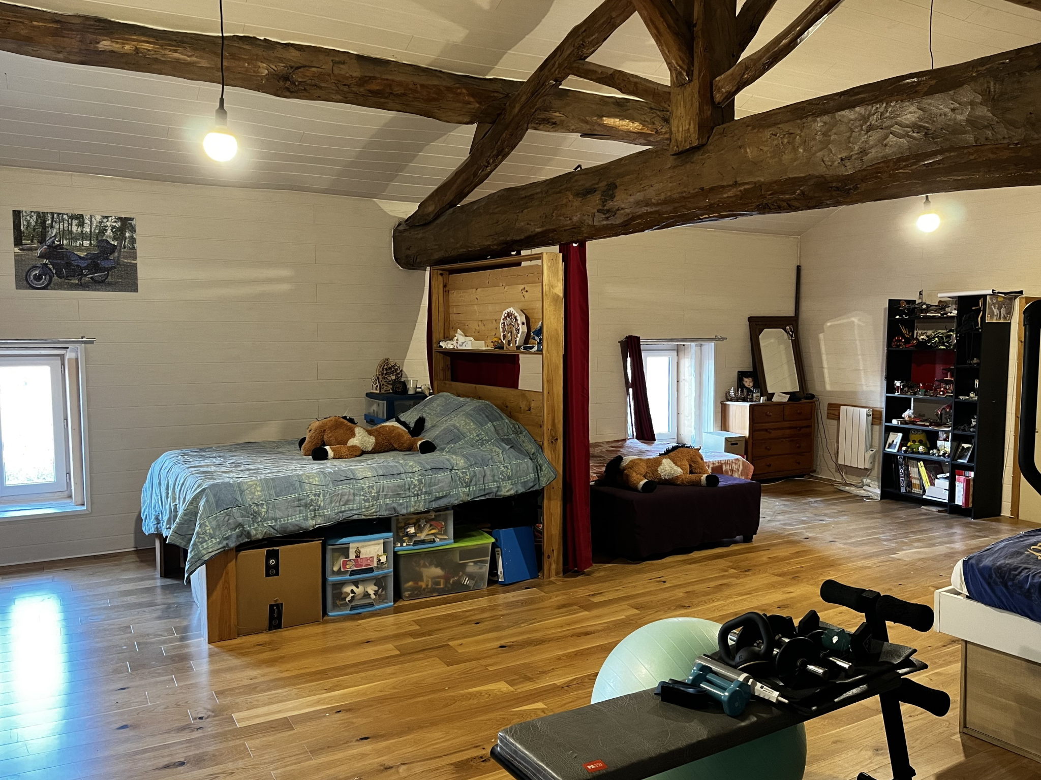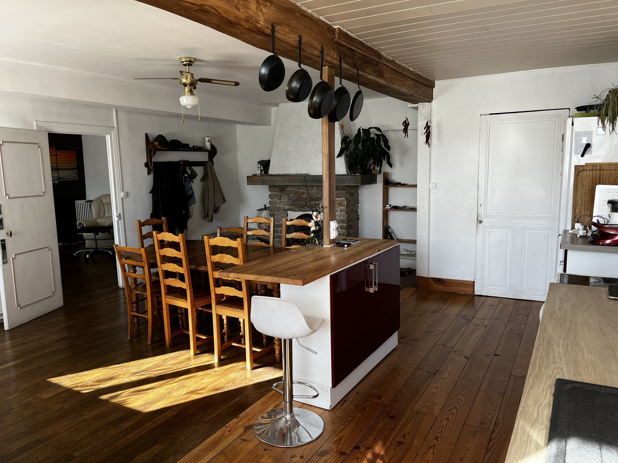 Cette maison offre des pièces de bonne taille et un plan agréable. Les pièces de vie se prolongent sur une galerie ensoleillée exposée Sud et Est : un grand séjour de 35 m² très lumineux avec sa cuisine américaine tout équipée et une cheminée, un salon de 24 m² donnant aussi sur la galerie et un balcon. On trouve ensuite deux grandes chambres, un bureau, une salle d'eau avec WC, un autre WC séparé ; et à l'étage une belle pièce cathédrale sous poutres apparentes. Un grenier de 60 m² est également exploitable selon vos besoins.