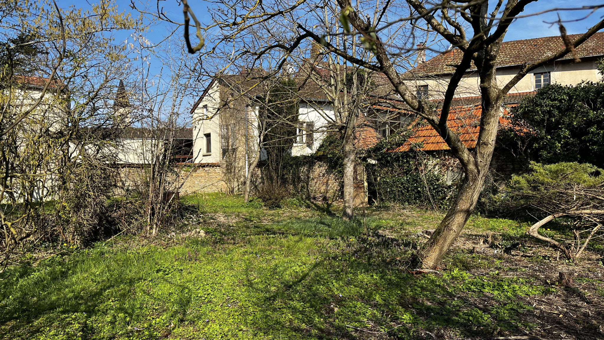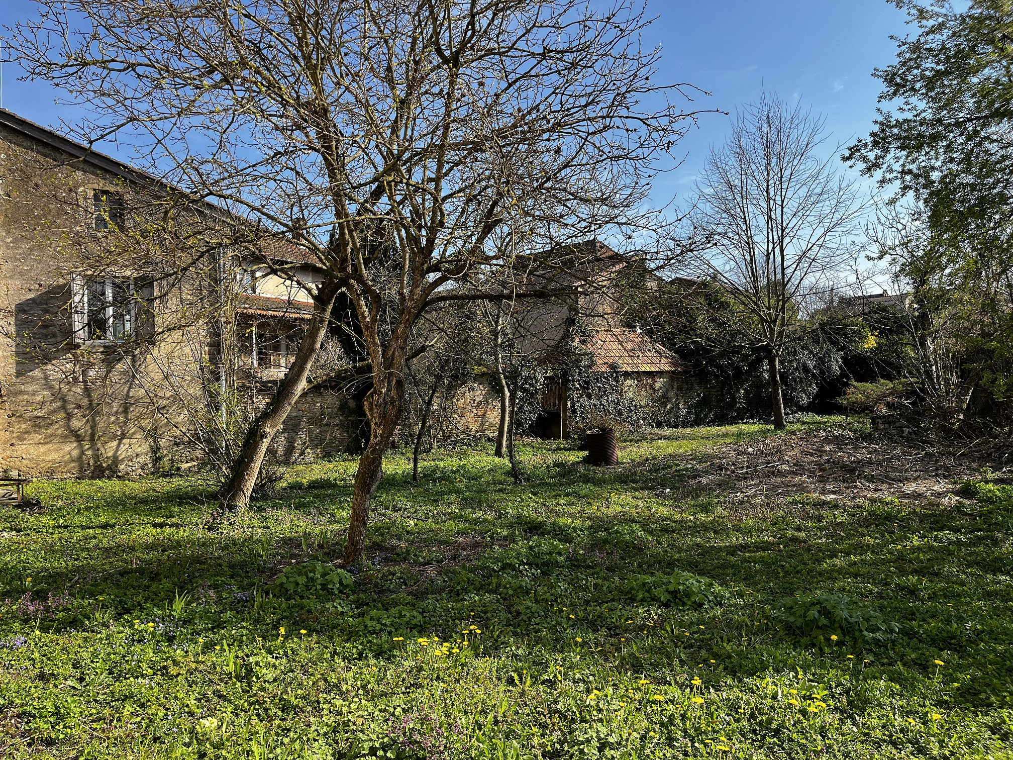 L'extérieur comprend une belle cour de 330 m², dans laquelle on peut rentrer en voiture, ainsi qu'un jardin clos de 560 m² (piscine possible).