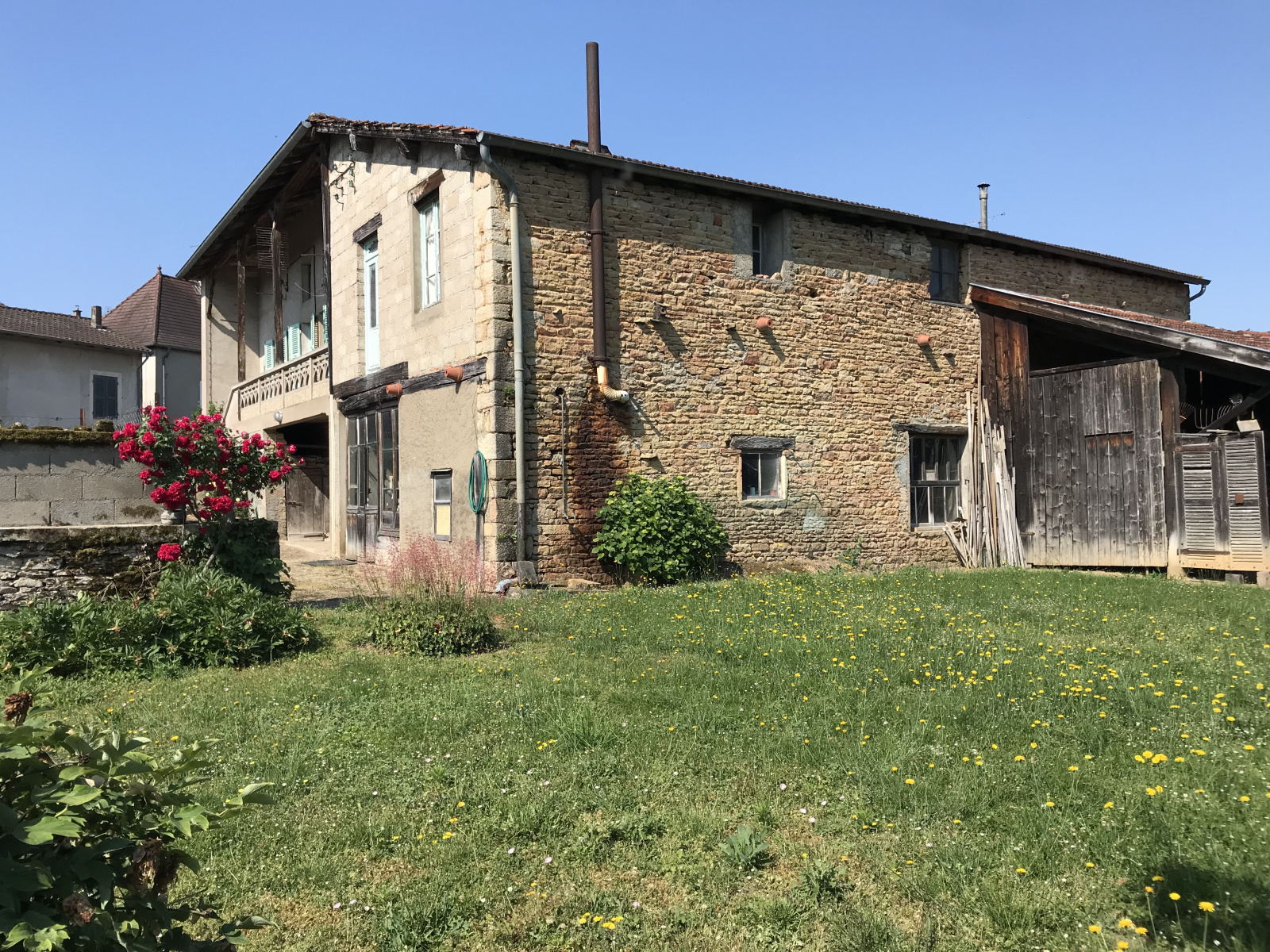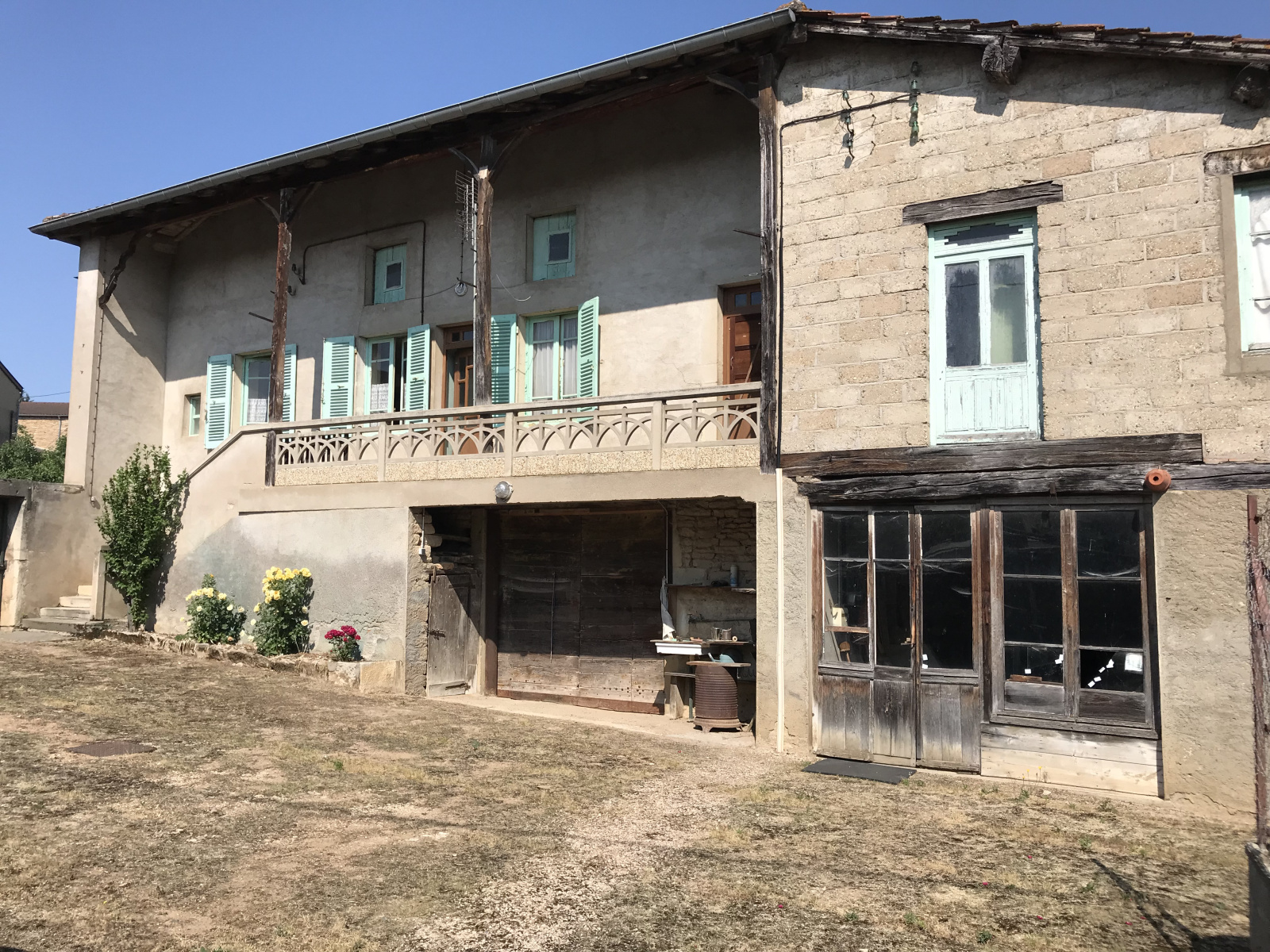 Cette maison présente une base saine et de belles possibilités d'aménagement, en créant éventuellement plusieurs logements distincts (3 portails permettant l'accès à la propriété) - Un grand auvent en bois et un appentis en pierre complètent l'ensemble.